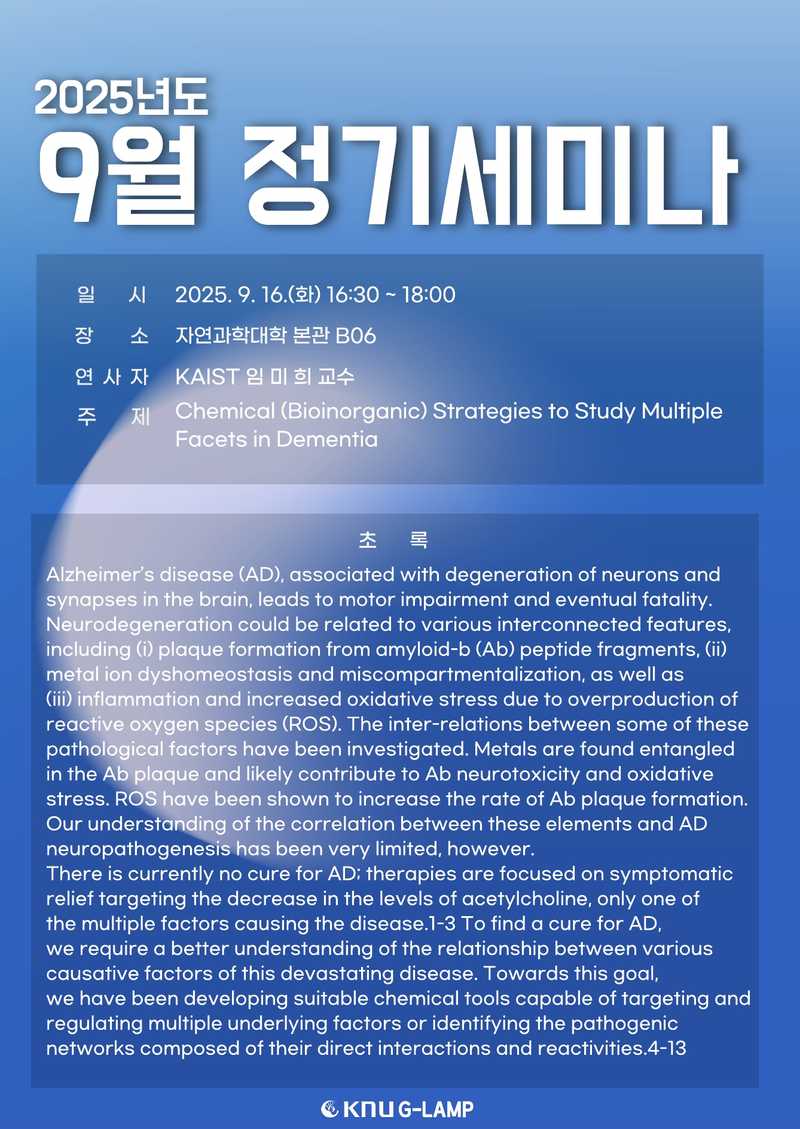 2025 경북대학교 G-램프(LAMP) 사업단 9월 정기세미나 일정 안내